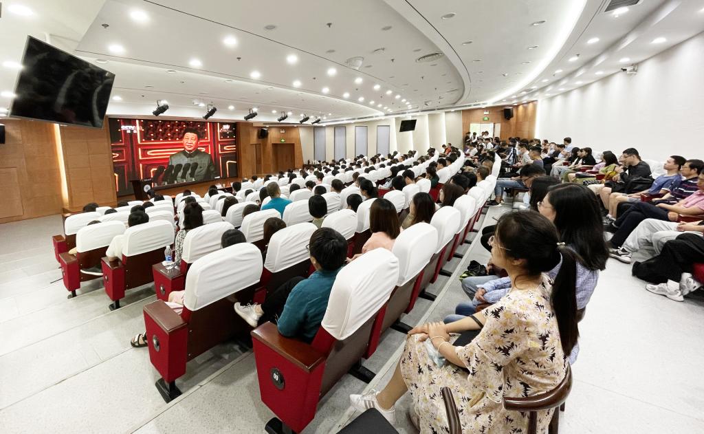直播现场,大家情绪饱满、精神振奋,跟随习近平总书记饱含深情又振奋人心的讲述,回顾了中国共产党团结带领中国人民实现中华民族伟大复兴而进行的一切奋斗、一切牺牲、一切创造。回顾了党在百年奋斗的光辉历程中开辟的伟大道路、创造的伟大事业、取得的伟大成就,展望了中华民族伟大复兴的光明前景,深刻阐述了过去我们为什么能够成功、未来我们怎样才能继续成功。