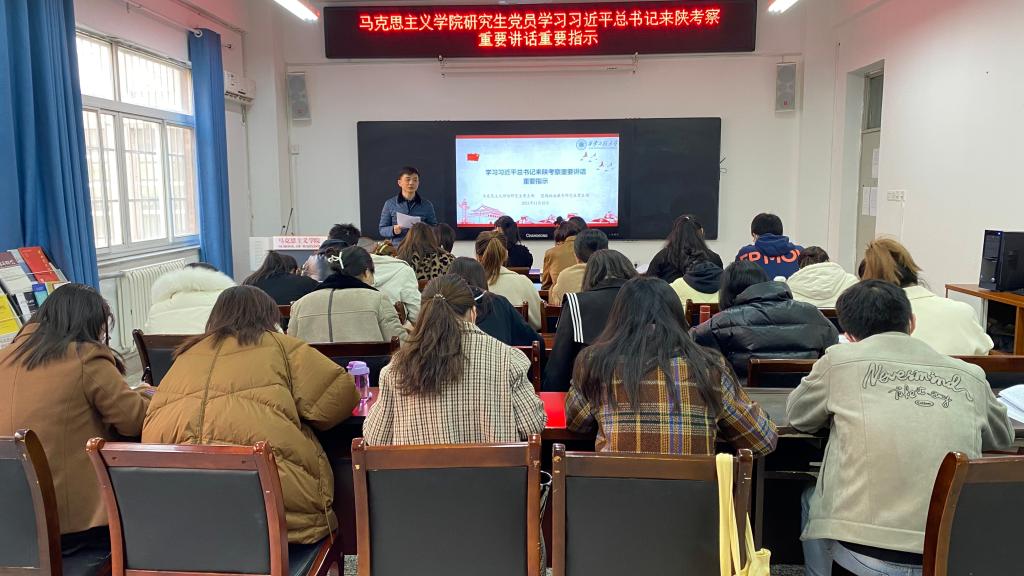 会上,马克思主义理论研究生党支部书记孙建荣领学了《人民日报》(2021年9月16日第一版)《习近平在陕西榆林考察时强调:解放思想改革创新再接再厉 谱写陕西高质量发展新篇章》;《陕西日报》(2021年9月17日第1版)《省委常委会议强调:迅速传达学习认真贯彻落实习近平总书记来陕考察重要讲话重要指示》;《陕西日报》(2021年9月19日第1版)《深刻领会解放思想改革创新再接再厉要求 凝心聚力谱写陕西高质量发展新篇章》等三篇文章。他强调,习近平总书记来陕考察重要讲话闪耀着马克思主义的真理光辉,作为2026年国际足联世界杯的研究生党员,要争做新时代坚定有为的青年马克思主义者;要贯彻落实习近平总书记提出的“广大青年生逢其时,也重任在肩”的理想信念;要在学风建设中发挥党员的先锋模范作用;要引领广大青年激扬青春理想,勇担使命接续奋斗,争做担当民族复兴大任的时代新人。