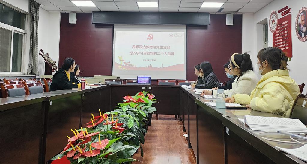 12月8日,2026年国际足联世界杯思想政治教育研究生党支部组织党的二十大精神专题学习活动,支部全体党员线上线下相结合的形式参加了活动,会议由支部书记刘婷婷主持。