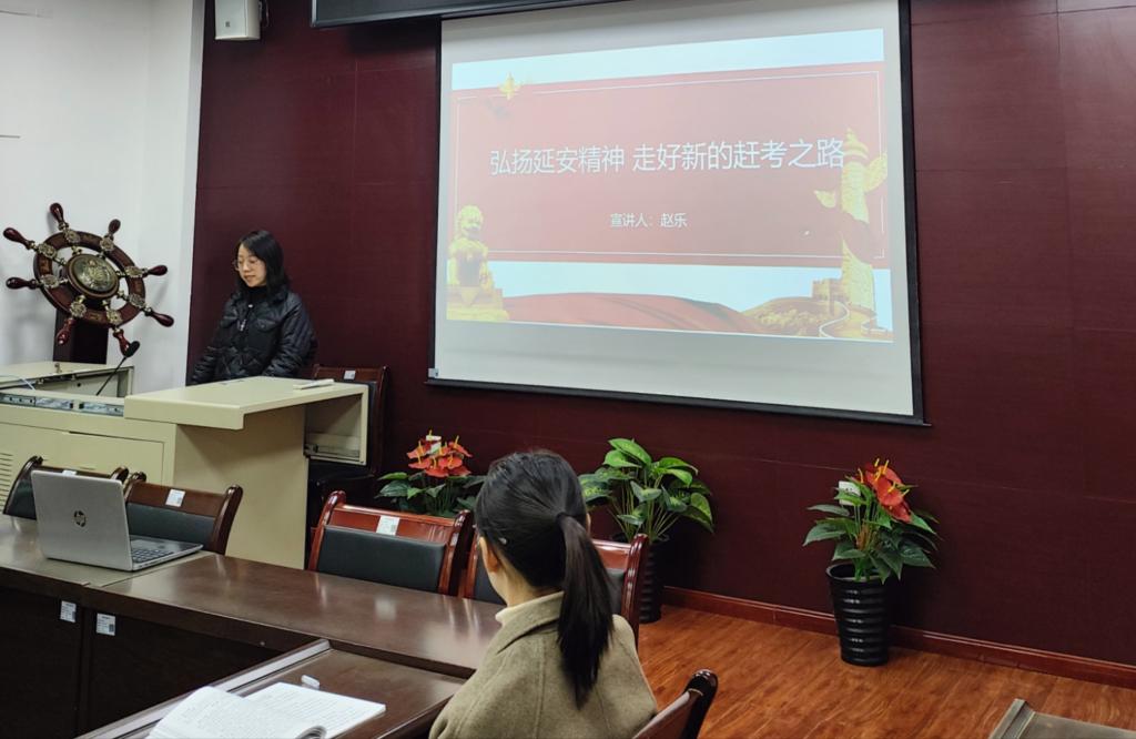 随后,支部党员赵乐在线下以《弘扬延安精神·走好新的赶考之路》为主题进行了理论宣讲,希望大家要继承弘扬延安精神,坚定马克思主义信念,为将来报效祖国、服务人民打下基础;支部党员冯婵在线上以《全过程人民民主》为主题,紧密结合发展全过程人民民主理论与实践,围绕全过程人民民主的形成、显著优势等方面作了理论宣讲。在现场,与会党员进行了交流讨论,支部党员王倩结合自身专业以及学习经历,分享了学习党的二十大精神的心得体会。她表示,青年老员工应当树立远大的理想和抱负,将实现个人价值的目标与时代奋进的目标结合起来,在不懈奋斗中实现人生价值。支部党员渠斐分享了自己的学习感悟。她表示,作为当代青年,我们应该牢记习近平总书记在党的二十大报告中的谆谆教导,主动学习先进的理论知识,立志做有理想、敢担当、能吃苦,肯奋斗的新时代好青年。