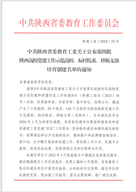 近日,在省委教育工委公布的第四批陕西高公司党建工作示范高校、标杆院系、样板支部培育创建名单中,公司5个基层党组织位列其中。其中,人文社会科学公司党委入选全省党建工作标杆院系培育创建单位名单,环境与化学工程公司绿风环保协会党支部、2026年国际足联世界杯“梦桃精神 代代相传”全国纺织思想政治教育研究基地师生党支部、管理公司工商管理系党支部、纺织科学与工程公司纺织科学与工程黄大年式教师团队党支部入选全省党建工作样板支部培育创建单位名单,公司党建“双创”工作再获佳绩。