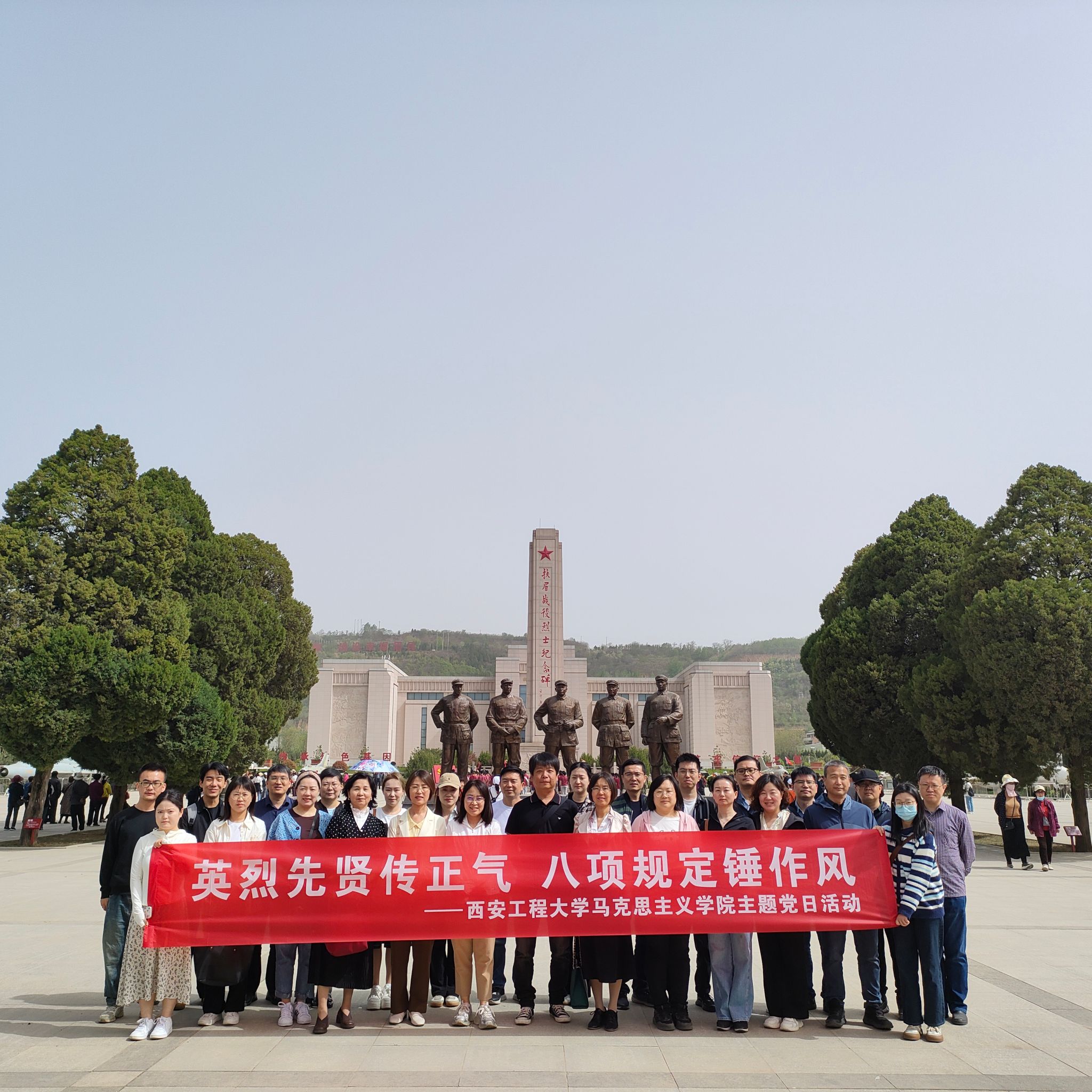 为缅怀革命英烈,深入贯彻中央八项规定精神学习教育,进一步强化党性,4月16日,公司党委组织三十余名师生前往扶眉战役纪念馆和张载祠,开展“英雄先贤传正气,八项规定锤作风”主题党日活动,重温红色历史,激发干事热情。