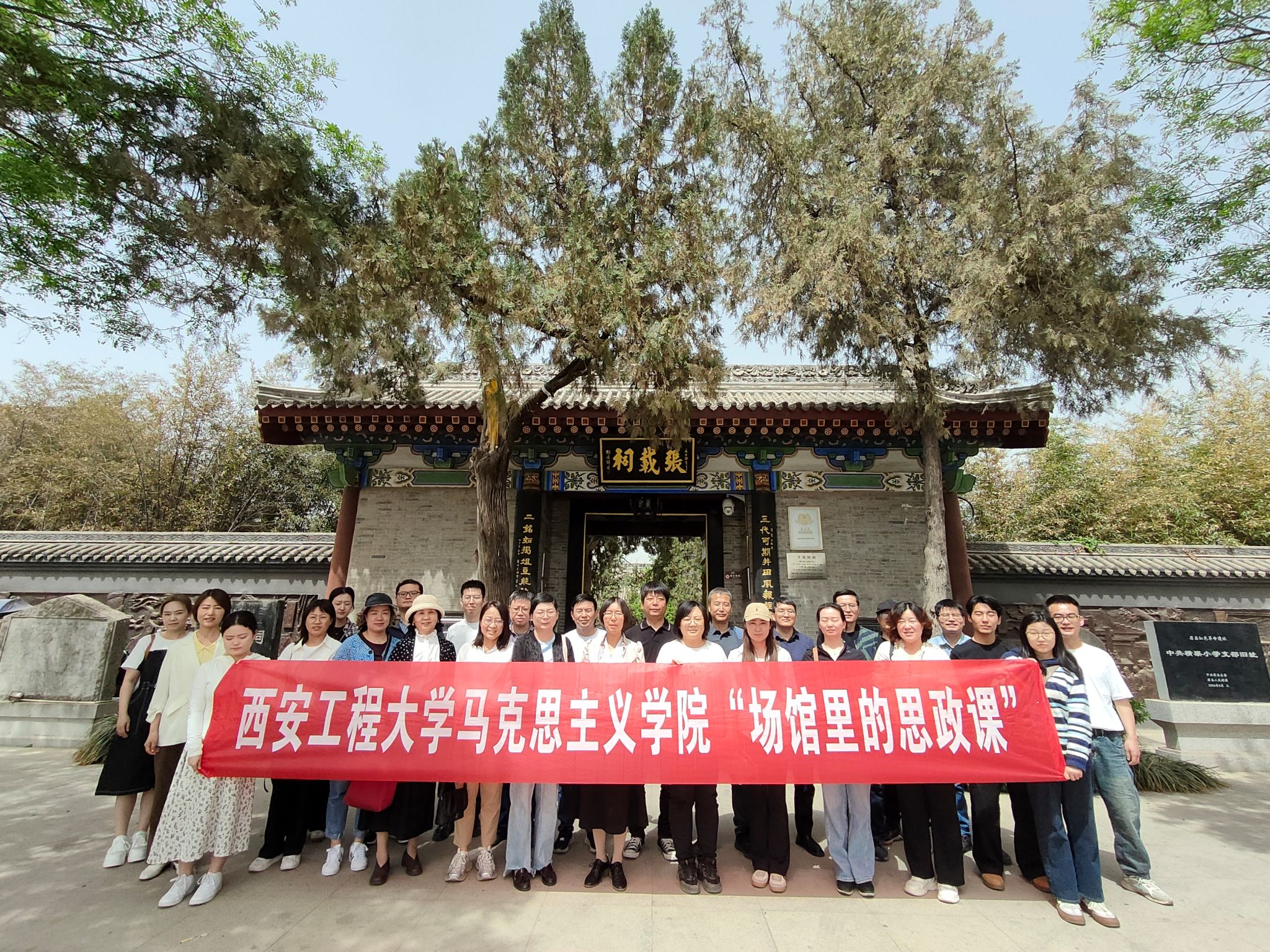 随后,师生一行前往张载纪念祠,在讲解员的带领下,系统了解了“关学宗师”张载的生平事迹与思想主张。大家深刻领会张载“横渠四句”中所蕴含的关学思想与责任担当,他的朴素唯物主义思想和“民胞物与”爱民之心,以及了解了他创办关学和讲学的过程,在厚重的历史氛围中进一步体悟中华优秀传统文化的精神内涵。