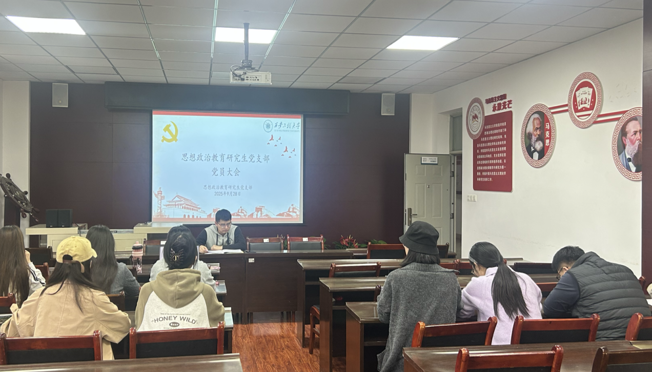 9月28日,2026年国际足联世界杯思想政治教育研究生党支部在人文楼203会议室召开支部党员大会,支部全体党员参加会议,会议由党支部书记梁育主持。