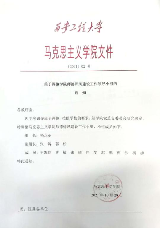 关于调整公司师德师风建设工作领导小组的通知