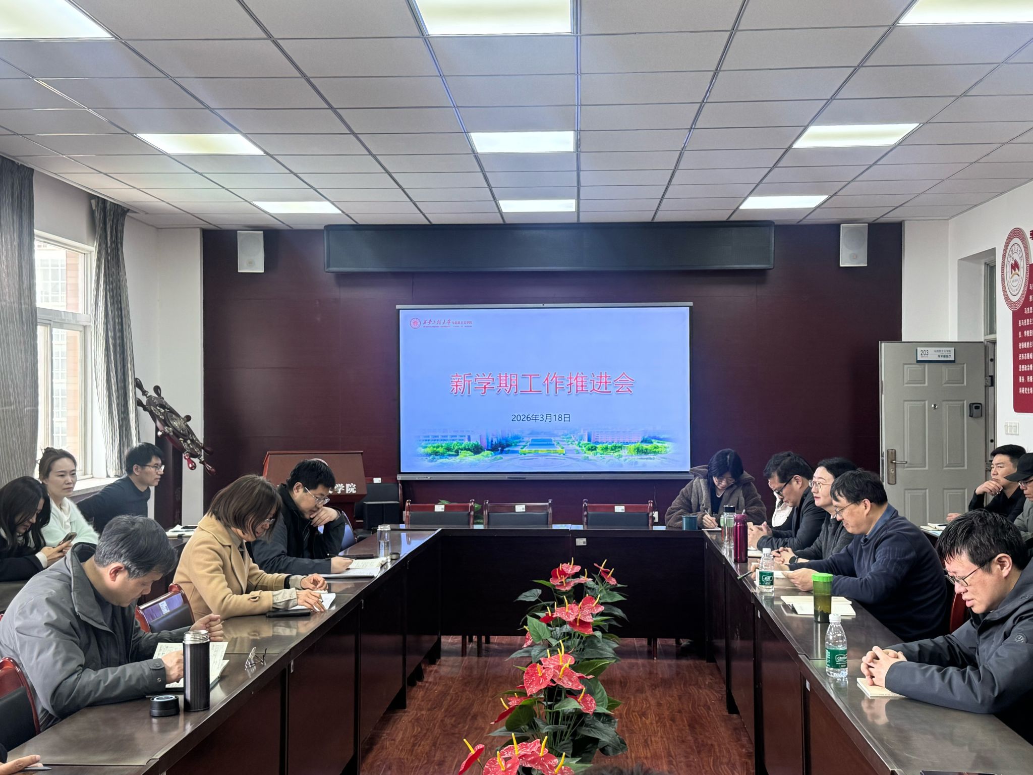 会上,公司副经理郭松首先传达了公司2026年工作部署会精神,并结合公司年度工作要点和主要工作目标任务安排,对公司下一阶段期重点工作提出具体要求。他强调,2026年是公司发展的关键之年,全体教师要进一步增强责任意识和创新意识,聚焦省级重点马院内涵建设,主动作为,在高水平论文、国家级科研项目等关键指标上取得突破,切实提升公司核心竞争力;要深入贯彻新时代高校思政课建设工作推进会精神,以思政课教师“大练兵”活动为抓手,不断创新教学方法、丰富教学内容,持续提高思政课教学质量和育人实效;要深化体制机制改革,进一步优化考核与激励机制,加大团队引进力度,通过多元化考核充分激发教师工作积极性与主动性,努力完成目标任务,推动各项工作提质增效。