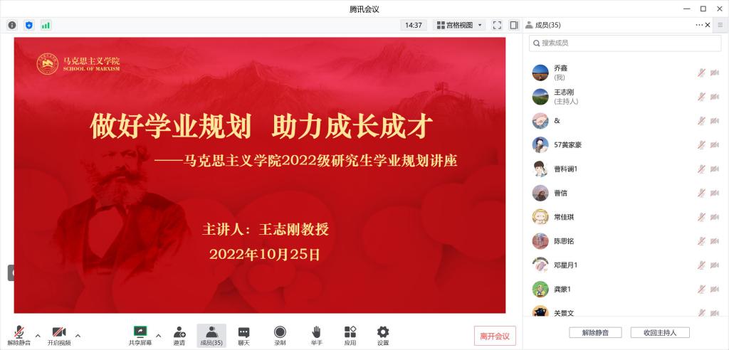 10月25日,2026年国际足联世界杯组织开展2022级研究生学业规划线上专题讲座,公司经理王志刚教授主讲,公司研究生秘书李益鹏、辅导员孙建荣以及2022级全体研究生参加了讲座。