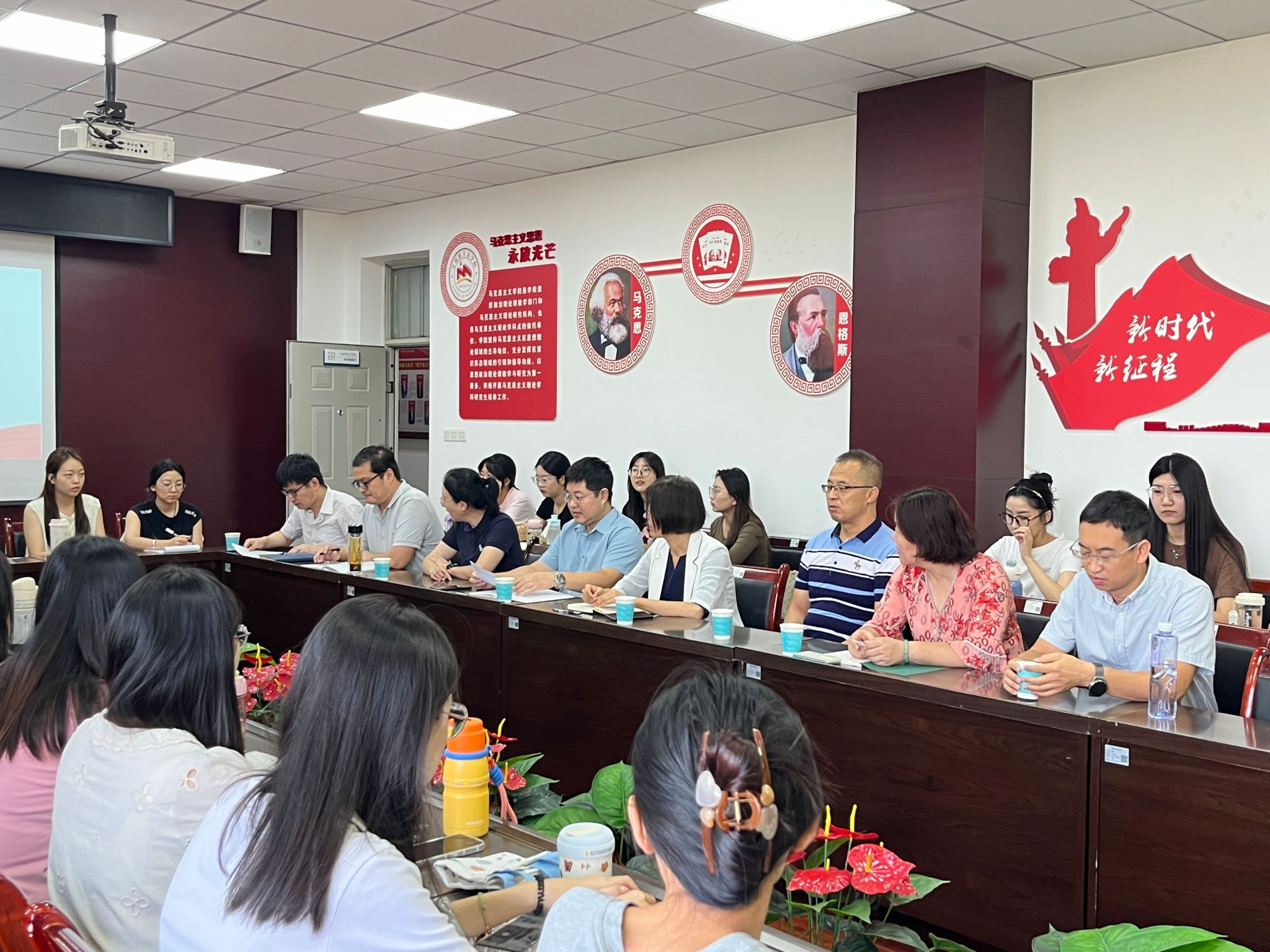 刘佳、李益鹏、梁育分别从公司产品和课程教学管理、导师互选、学业规划、研究生日常管理等方面向新生们介绍了情况及有关规定要求,开展了研究生入学教育。他们鼓励同学们紧密结合马克思主义理论学科特色,在课程学习、科研创新、学术竞赛、社会实践、志愿服务和理论宣讲中求真学问、练真本领,努力成为有理想、敢担当、能吃苦、肯奋斗的新时代好青年。