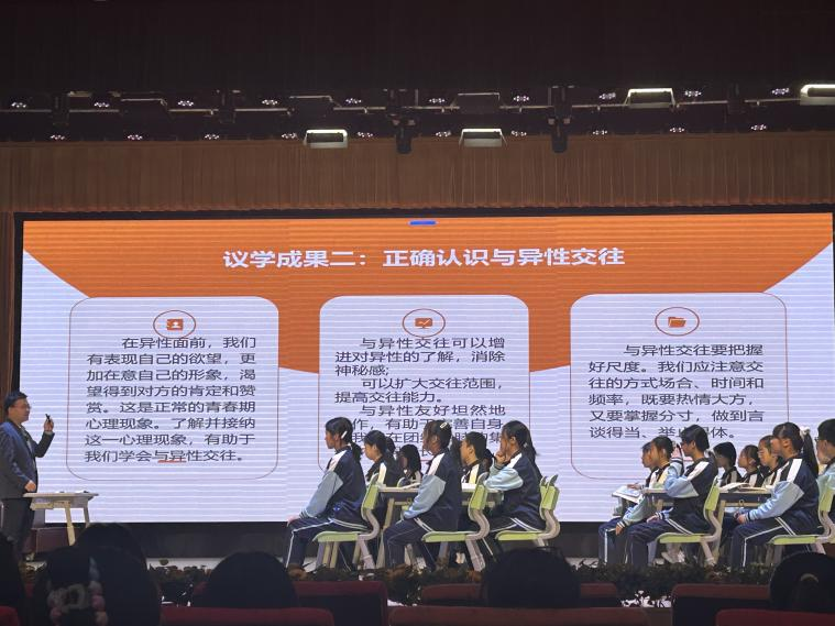 在课程观摩环节,师生们认真聆听了正高级教师吕亚鹏主讲的《男生女生》和高级教师梁寅子讲授的《历久弥新的思想理念》。吕老师以热身小游戏开启课堂,采用议题式教学,借助三封信件,引导员工深入探讨异性差异、交往和情感,帮助员工理解性别差异与优势互补,最后寄语员工正确看待异性交往,研究生们专注记录吕老师的教学方法和互动技巧。梁老师用《孔子》《孟子》《论语》名言导入,以毛乌素治理为案例开展议题式教学,抛出总议题,通过展示治理前后资料,组织员工讨论生态环保、可持续发展等角度的问题。梁老师还与师生们开展了交流,阐释优秀传统思想理念的价值,使研究生们认识到议题式教学的重要性。