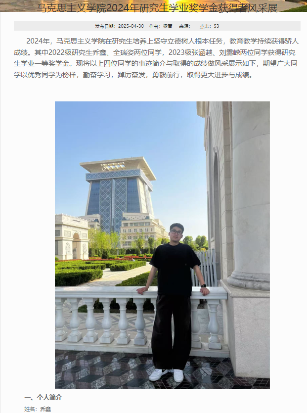 公司网站宣传研究生学业奖学金一等奖获得者先进事迹