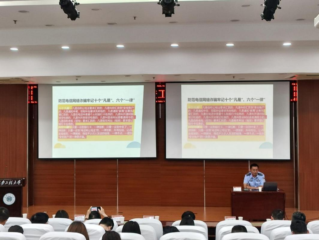 5月28日,受公司邀请,斜口派出所民警赵飞在图书馆报告厅为公司师生做防范电信网络诈骗专题讲座