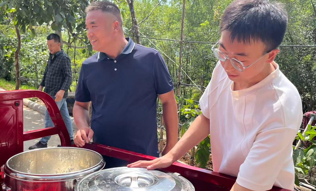 随后,调研团队与庞富强支书一起参与送餐。队员们分工协作,帮忙搬保温桶、舀饭、搀扶老人,主动加入助老行动。近2小时的送餐中,烈日下的庞富强始终笑容真诚,能准确说出每位老人的饮食偏好与身体状况,老人们纷纷致谢。送餐结束后,庞富强表示他还准备申请民政局救助资金,同时深耕直播助农,发展林下养殖推广特色农产品,以产业收益反哺民生,形成乡村振兴闭环,推进服务可持续性。