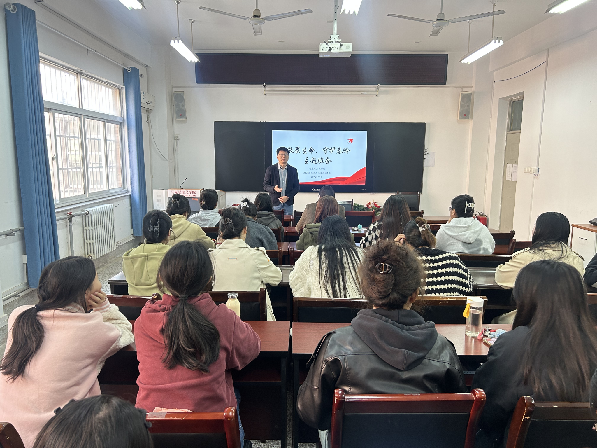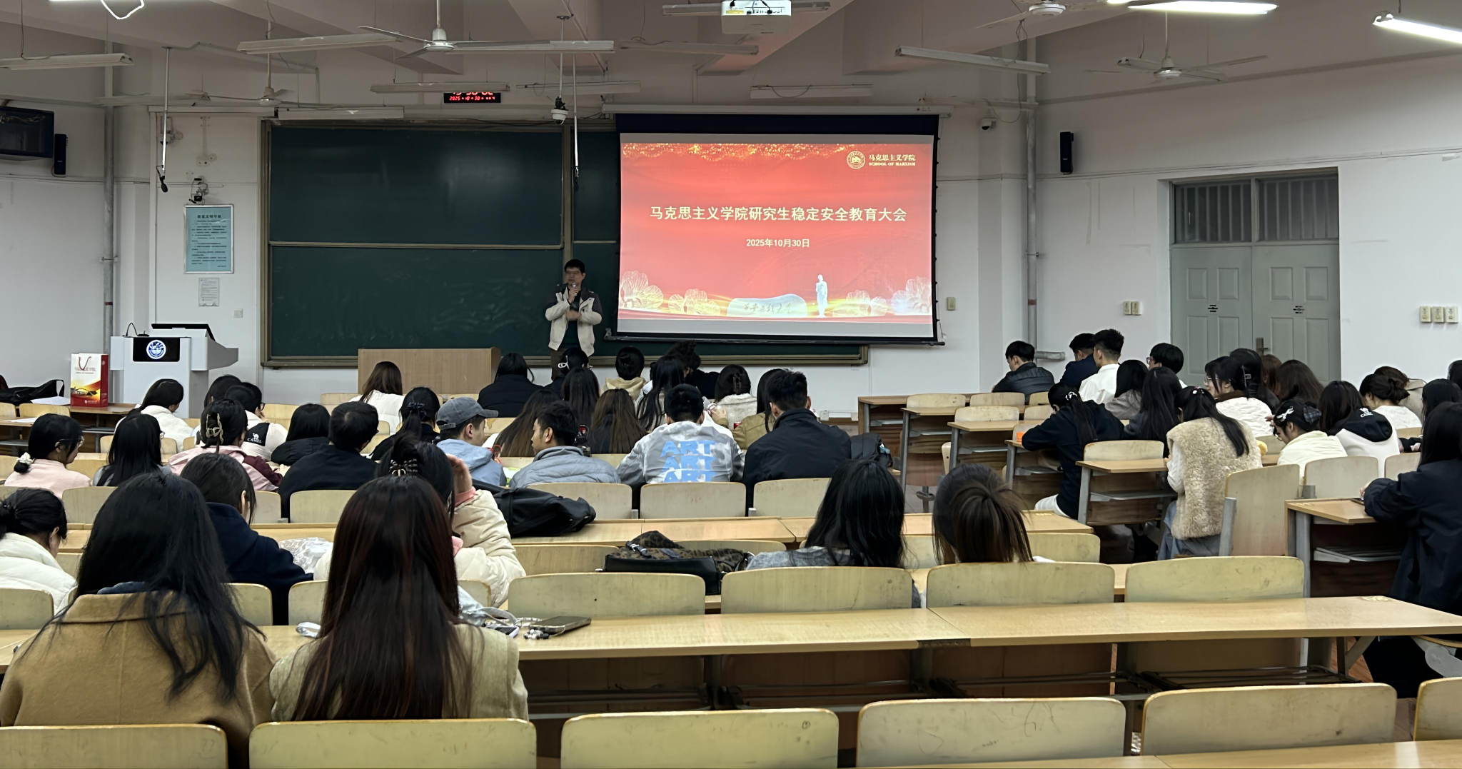 会上,梁育老师结合研究生群体实际,要求研究生牢固树立安全第一的观念,重点做到以下几点:一是要高度重视意识形态安全,提高网络安全意识,防范网络及电信等各类诈骗;二是要求严格遵守校园交通规则、规范电动车骑行以保障出行安全;三是开展“敬畏生命,守护秦岭”专题安全教育,要求全体同学切实爱护秦岭生态环境,禁止组织和参加违规秦岭穿越探险,切实保护好人身安全;四是毕业生求职过程中,需通过正规渠道获取招聘信息、仔细辨别用人单位资质,切实防范就业风险。