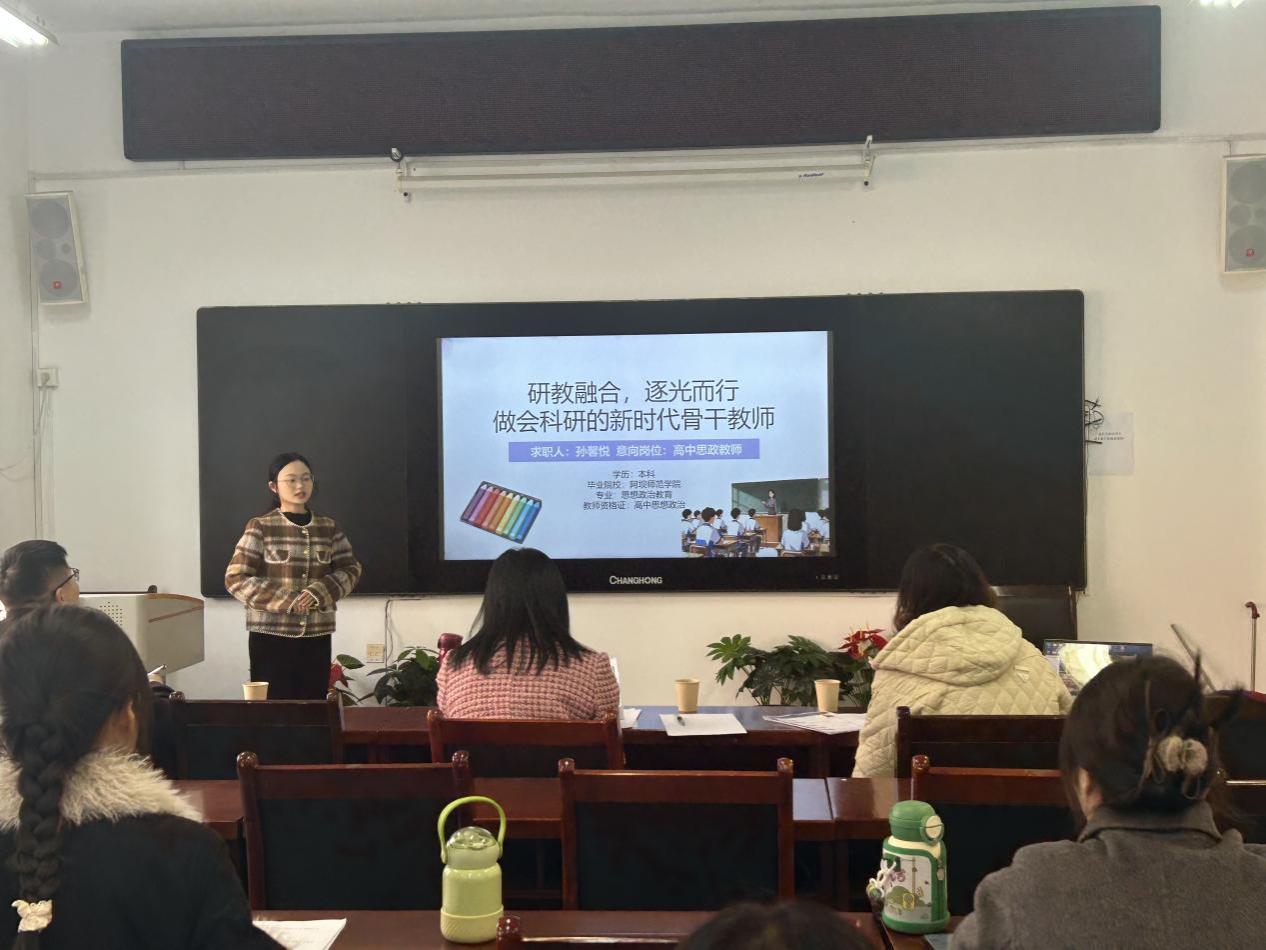 评委们从职业目标、学习实践行动、动态调整三个维度为每位参赛选手开展精准点评并提出优化建议。经过评审,2024级赵梦婷《扎根三尺讲台,深耕思政教育》、2025级孙馨悦《研教融合,逐光而行——做会科研的新时代骨干教师》及杨天巧《从梦想启航到桃李芬芳,在乡村沃土里绽放教育之花》分获前三。