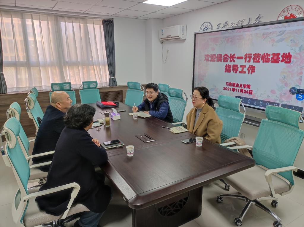 杨永革首先对侯会长一行来访表示欢迎,随后简要介绍了基地成立以来在理论研究、宣传教育和学术交流等方面的工作开展情况。侯代会对基地成立以来的开展的工作表示肯定,并就基地下一步的工作规划提出了具体的建议。