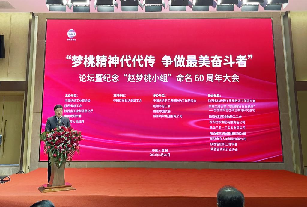 4月24日至25日,公司“梦桃精神 代代相传”全国纺织思想政治教育研究基地作为协办单位,参加了由中国纺织工业联合会、陕西省总工会、陕西省工业和信息化厅、中共咸阳市委和咸阳市人民政府等联合举办的“梦桃精神代代传 争做最美奋斗者”论坛暨纪念赵梦桃小组命名60周年大会。公司党委书记马万清在会前会见了中国纺织工业联合会会长孙瑞哲、原会长王天凯;公司党委副书记赵小峰出席会议。