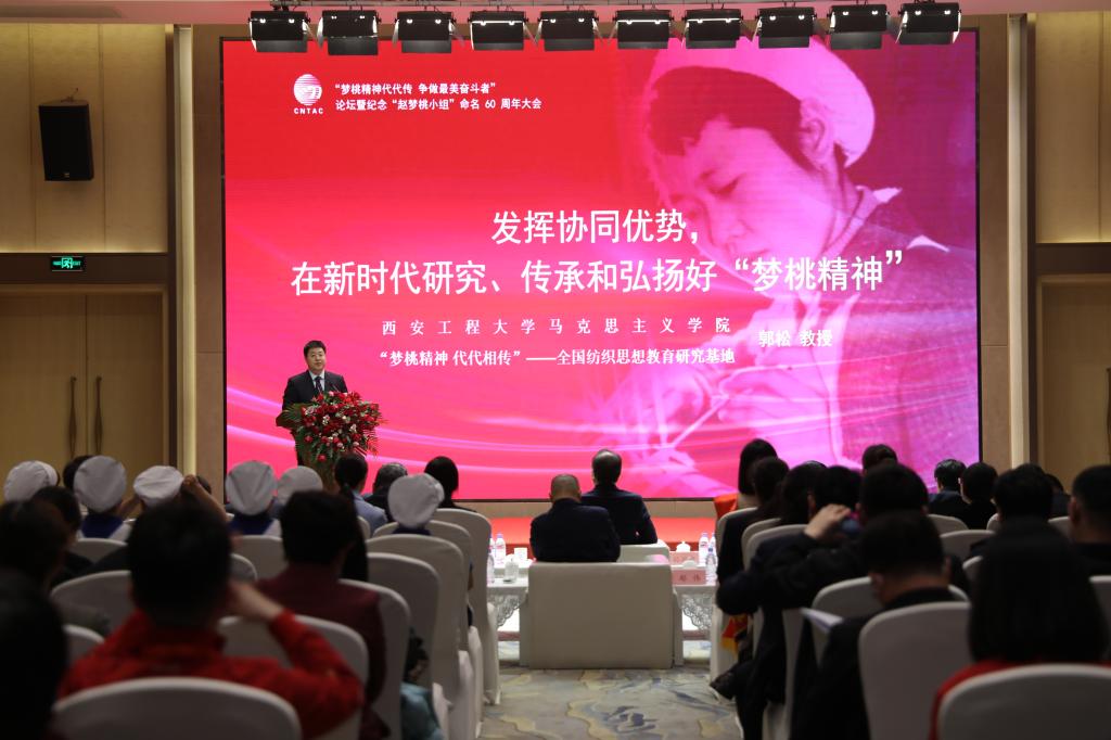 与会人员观看了《赵梦桃小组60年光辉历程》专题片;中国纺织工业联合会向咸阳纺织集团有限公司授予了“梦桃精神 代代相传”全国纺织思想政治教育实践基地牌;启动了“赵梦桃小组式全国纺织行业先进班组”创建活动。