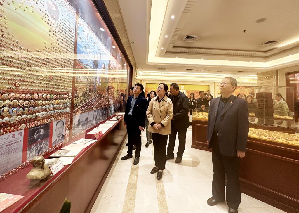 首先,参观了毛主席像章纪念馆,馆内收藏了银质、铜质、铝质等毛泽东主席像章百万余枚。此外,还有众多的毛泽东瓷像、毛泽东著作以及毛泽东语录等珍贵文物。其中,由像章拼成的“开天辟地”“改革开放”“三个代表”等30余块主题板块构思新颖,气势恢宏。