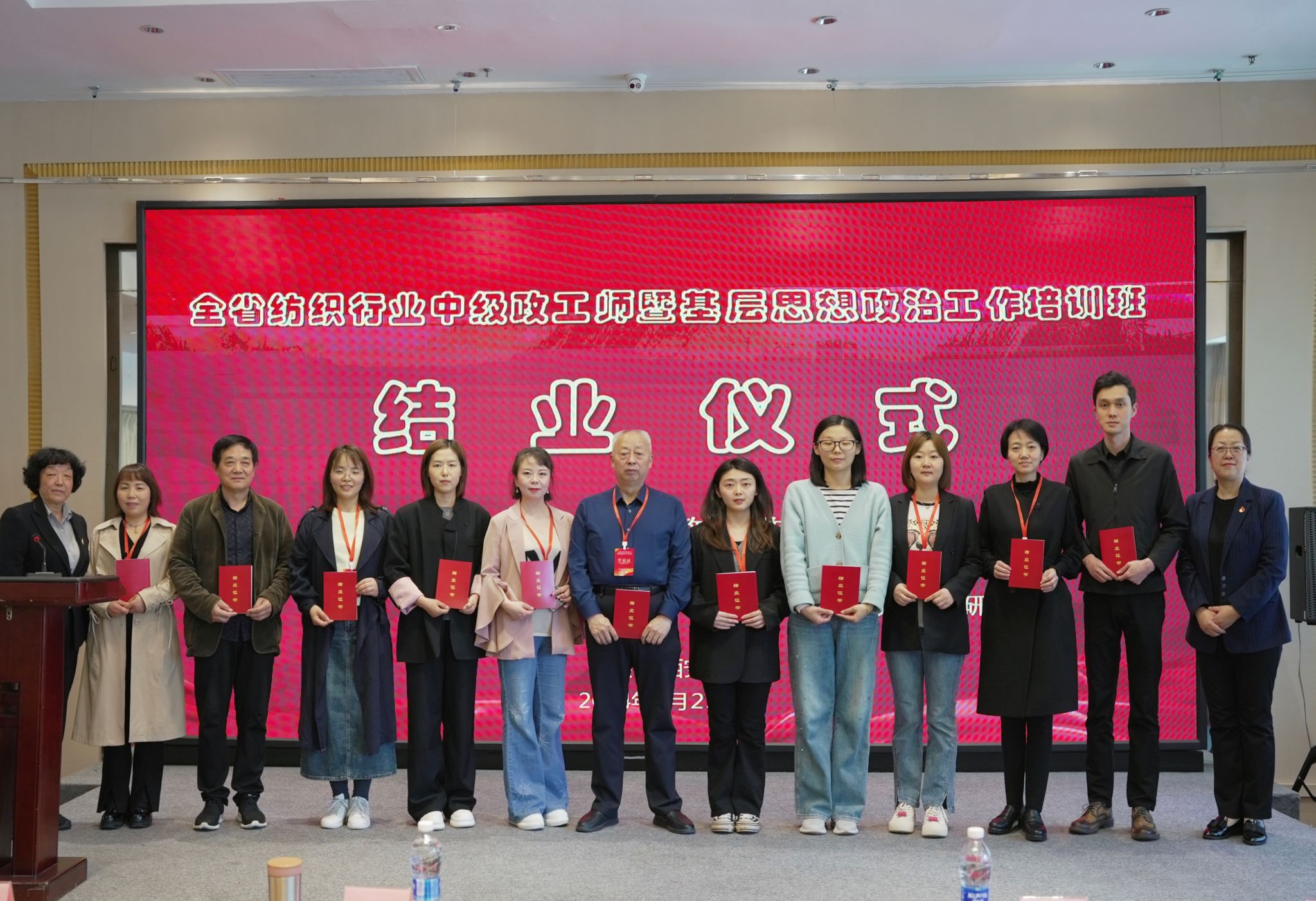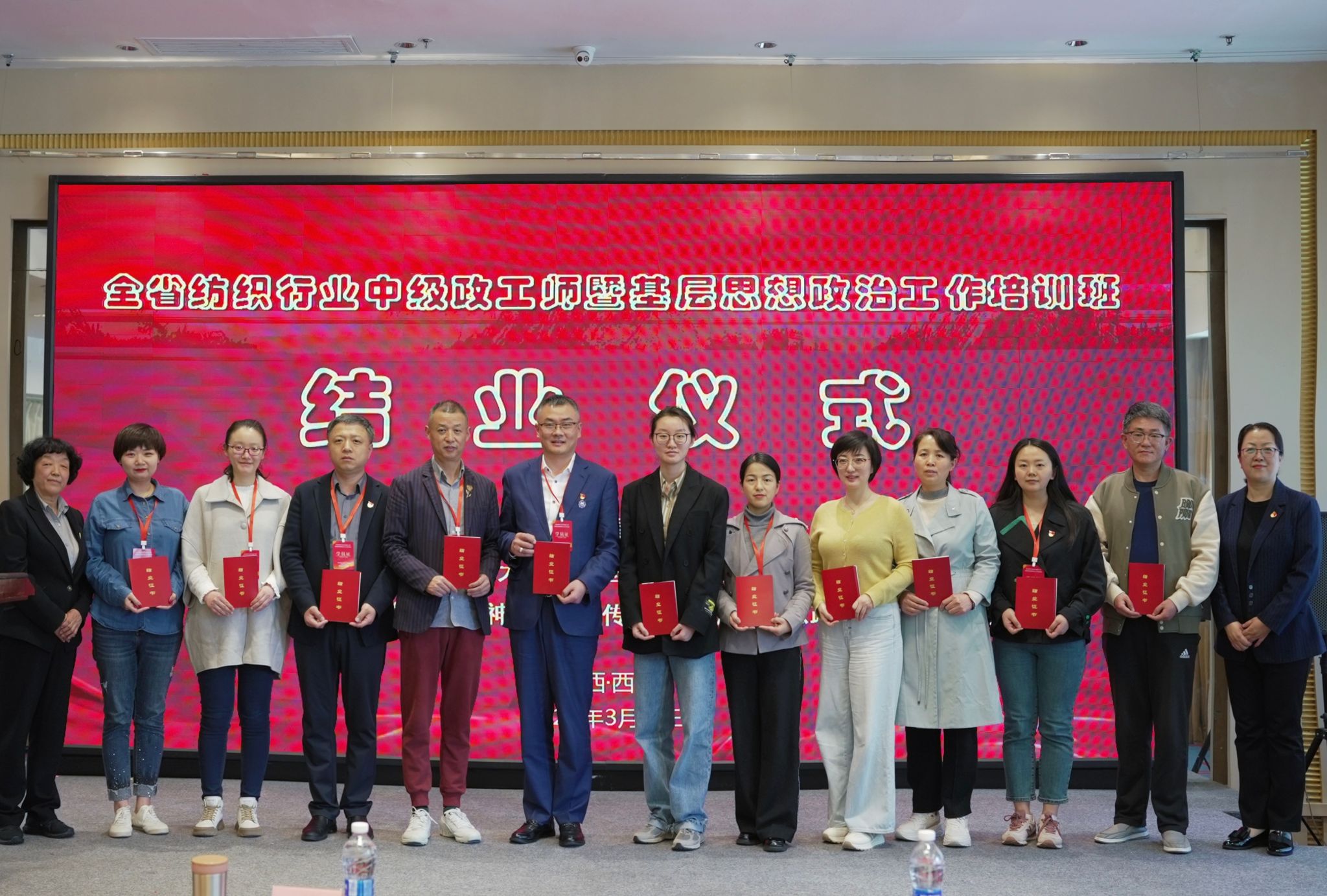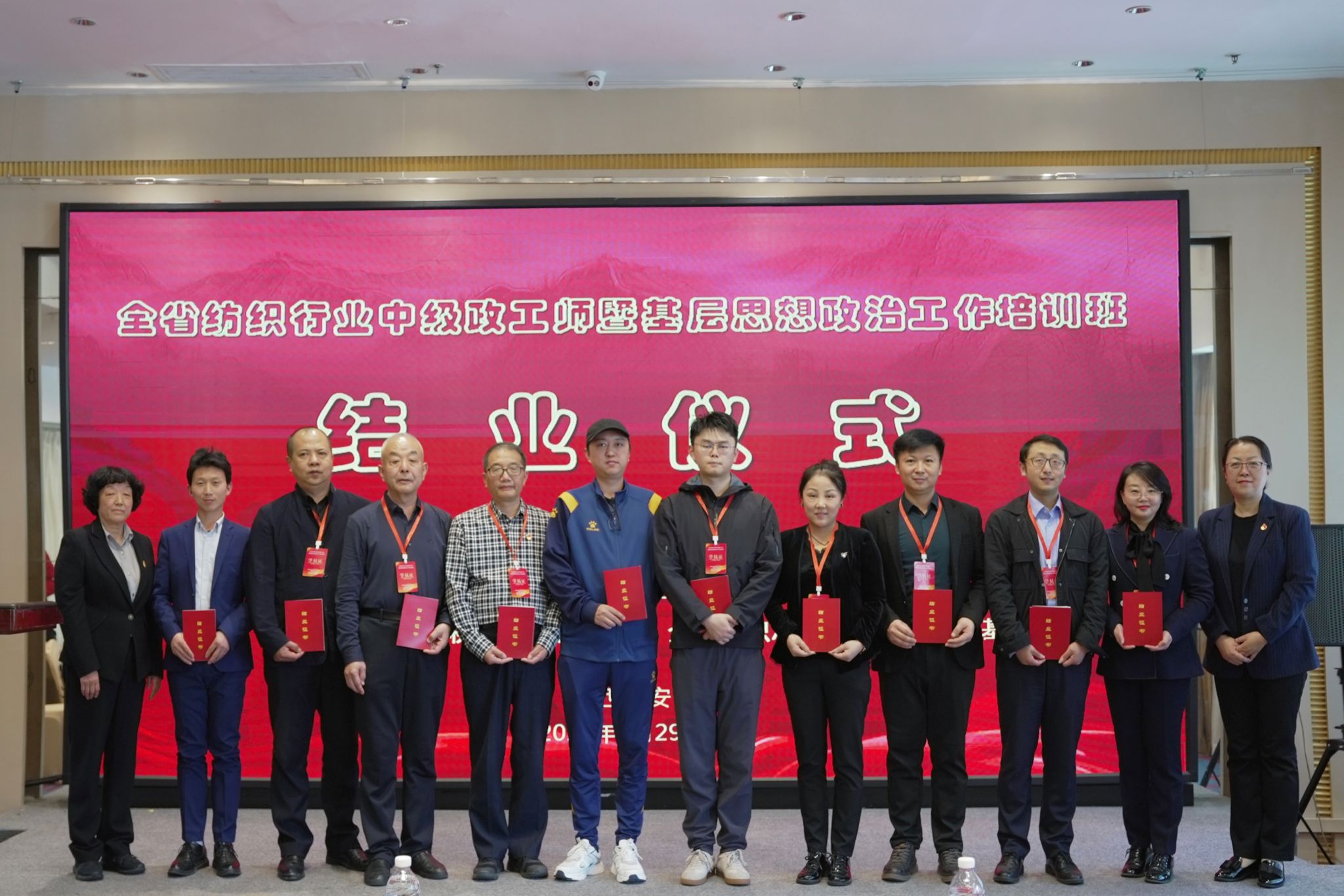 结业仪式还为广大学员颁发了结业证书。陕西省纺织职工思想政治工作研究会会长侯代会强调,本次陕西省纺织行业中级政工师暨基层思想政治工作培训班的成功举办,得到了全省各纺织企业的高度重视,广大学员学习劲头足,热情高,为提升全省纺织行业思想政治工作水平注入了新动力,为打造忠诚干净担当、党和人民满意的纺织行业党建与思想政治工作队伍奠定了坚实的基础。相信在大家的共同努力下,担负起新时代纺织行业发展的重大责任与使命,为推动陕西省纺织行业的高质量发展提供政治和思想保证。