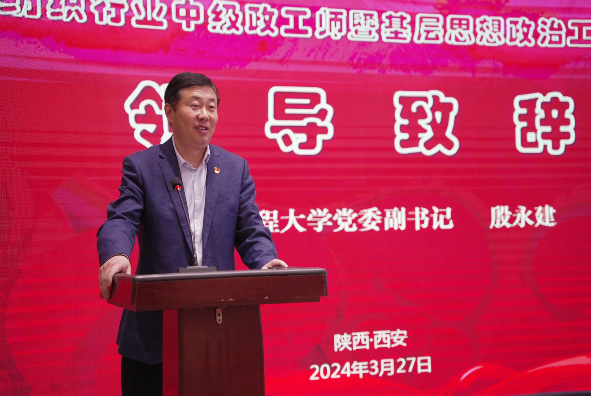 3月27日上午,培训班开班仪式在庄严而热烈的气氛中拉开帷幕。公司党委副书记殷永建出席开班仪式并致辞,他强调,思想政治工作是党的优良传统、鲜明特色和政治优势。当今中国,正处于中华民族伟大复兴的战略全局和世界百年未有之大变局的时代背景,如何学习研究贯彻好习近平总书记重要讲话精神,传承弘扬好新时代“梦桃精神”,深度挖掘其在产业职工队伍建设中的宝贵价值,推进陕西省乃至全国产业职工队伍建设,激发产业职工创新创造、追赶超越的热情和力量,为产业发展注入精神动力和智力支撑,让诚实劳动、勤勉工作蔚然成风,是新时代给党建和思想政治工作者提出的新课题,希望广大学员珍惜学习机会,加强交流,学有所获、学有所用,为陕西省纺织行业发展贡献智慧和力量。